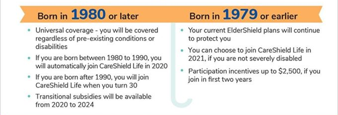 CareShield Life is essentially ElderShield 2.0 with a funky new tag, newer but better. As part of the government’s effort to better address our ageing population, CareShield Life is almost identical to ElderShield but with better coverage